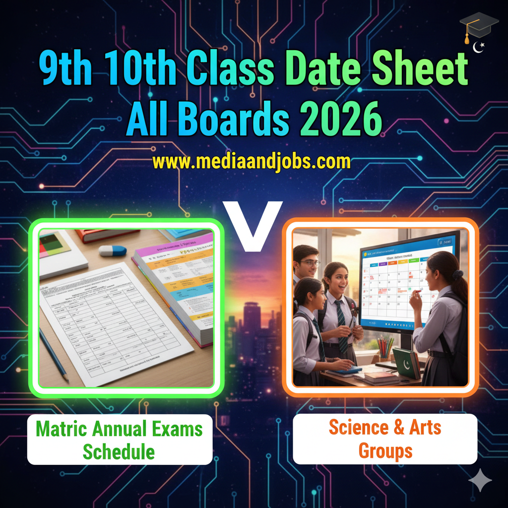 The 9th and 10th Class Date Sheet 2026 has been officially announced by the Board of Intermediate and Secondary Education (BISE). The schedule outlines all theory exams for SSC Part-I (9th Class) and SSC Part-II (10th Class), including morning and evening sessions. 9th class date sheet 2026. 10th class board exam 2026. BISE matric schedule 2026.