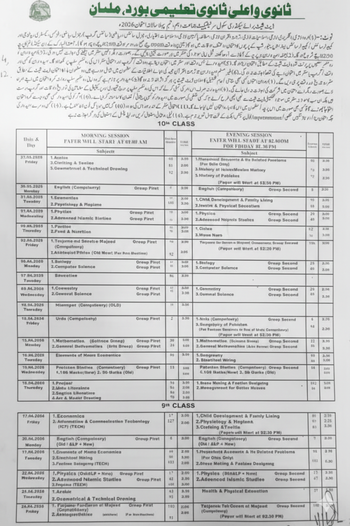 - 1 9th & 10th Class Date Sheet 2026 – Complete BISE Matric Exam Schedule